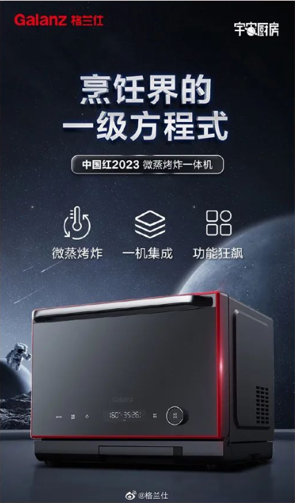 中国红,格兰仕红。在设计上,“中国红2023”系列微蒸烤炸一体机借鉴了中国经典设计,机体边框包裹一抹中国红赋予了产品深刻的品牌风格,让“黑科技”充满了摩登的味道。